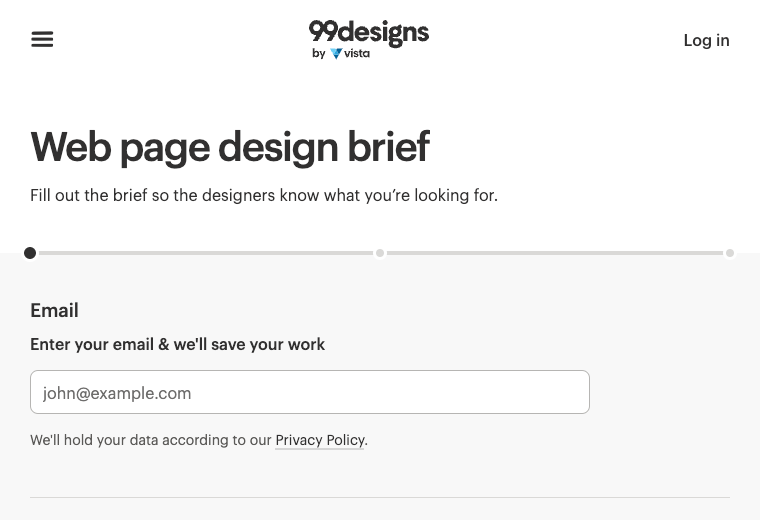 99Designs have built an impressive start flow. They've extracted a repeatable process from the steps frequently taken by designers to start a design project. This includes using visual examples to help guide the customer in expressing what they've got in mind.
